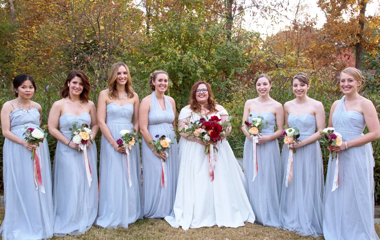 The bridesmaids with the bride, Molly Morris, outside Callanwolde