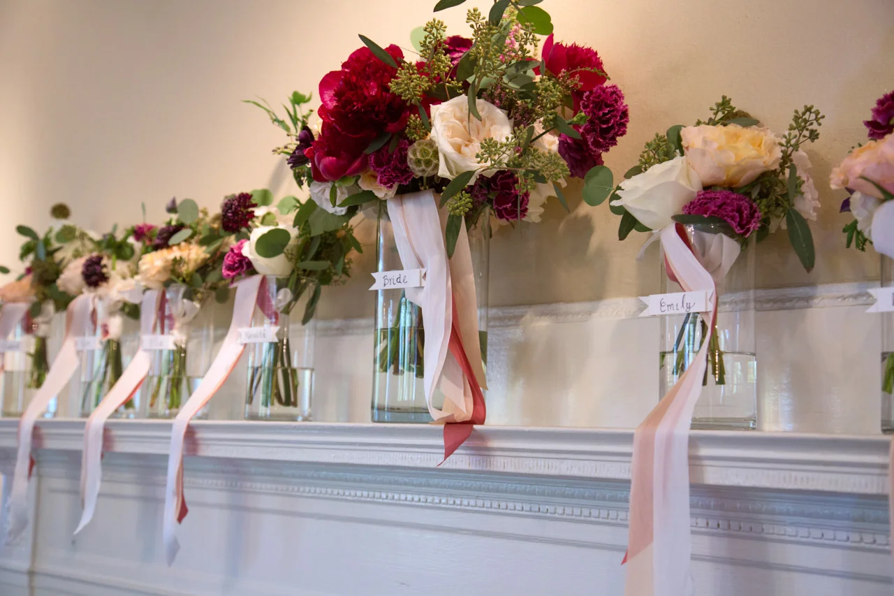 Bridal and bridesmaid bouquets with silk ribbon streamers